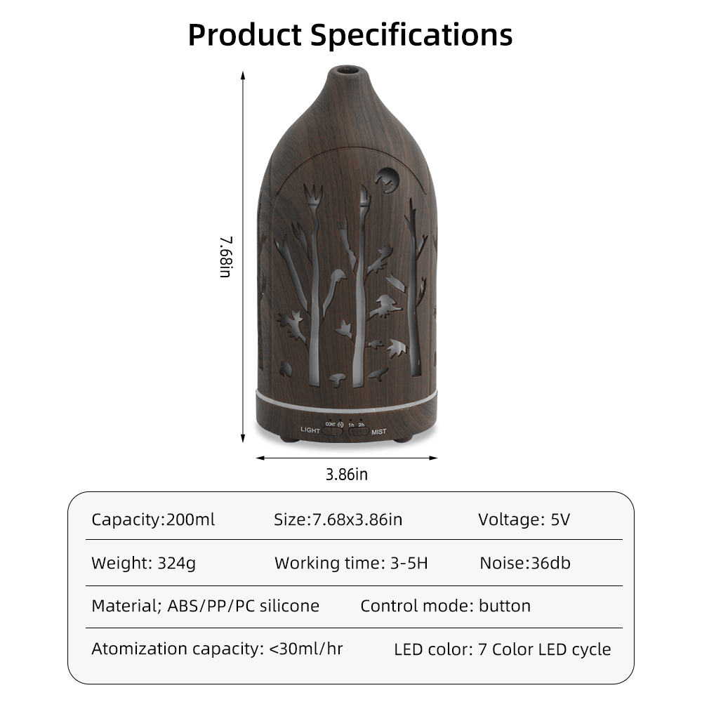 To provide a better life for you, this diffuser maintains an optimum humidity level around 50% for you and your family at home since this aroma mister is designed with the most advanced ultrasonic cool mist technology which can evaporate oil and water at a frequency of 2.4MHz.