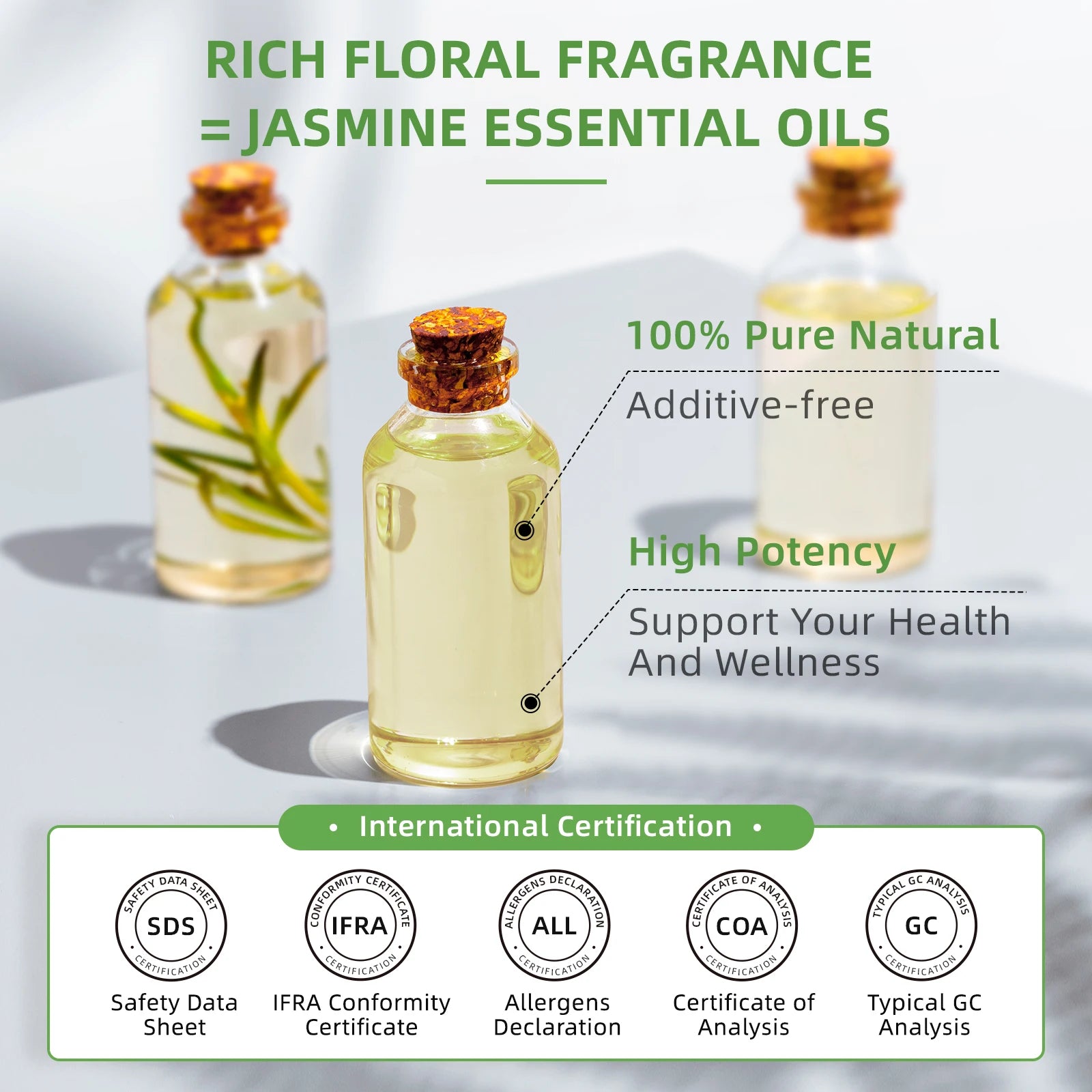 Safety Information: Jasmine Essential Oil has a delicate scent, change the water after diffuse.