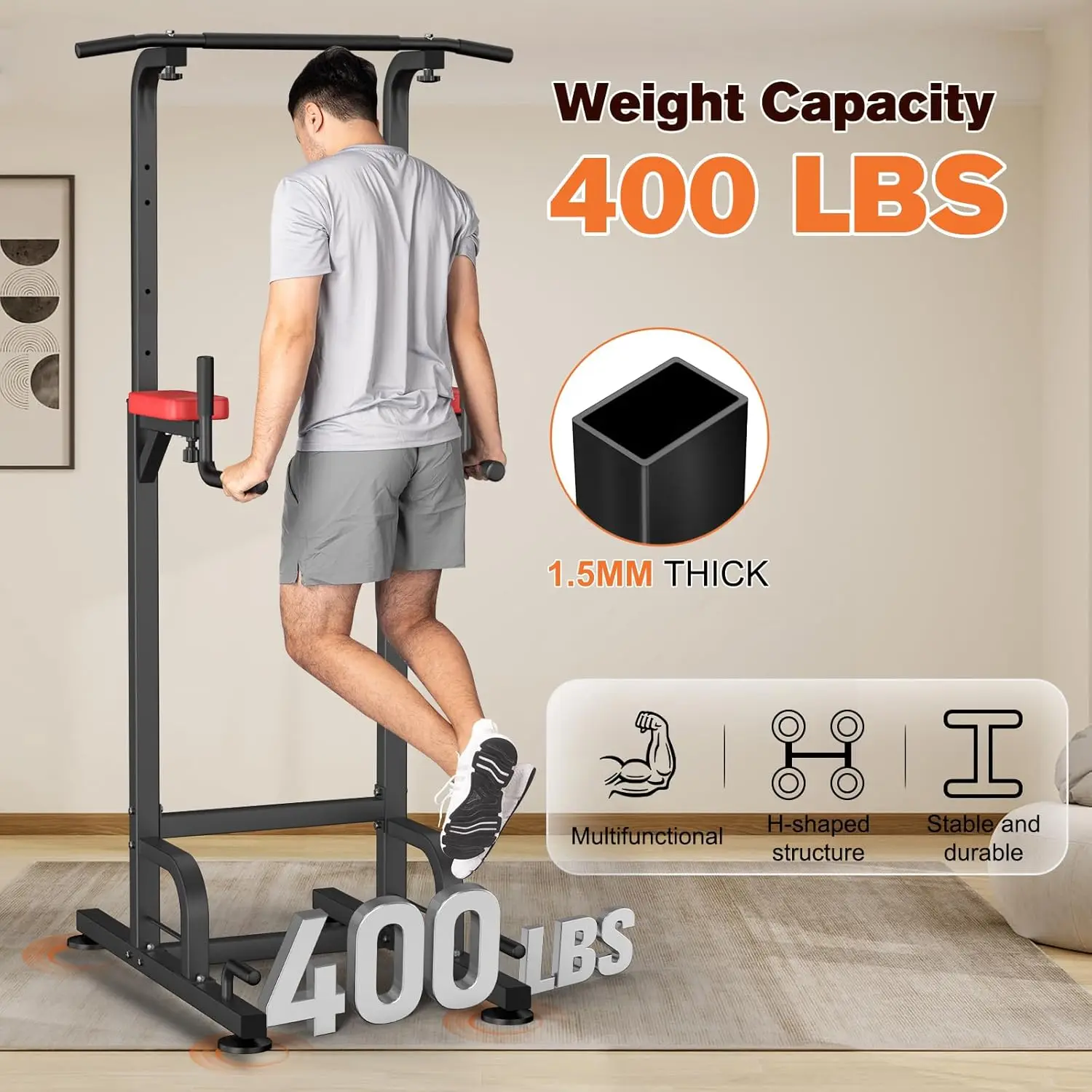 - Sturdiness and Durability, Supports up to 400 lbs, safety locknut and 4 sturdy suction cups for added stability. The Relife power tower features a robust pull up bar and stays steady without any wobbling or shaking, providing confidence and safety during your workout, whether you're doing pull-ups, push-ups, chin-ups,dips or other exercises.
