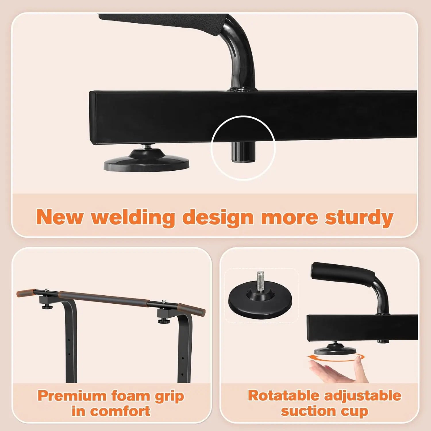 - 9 Adjustable Heights, The pull up bar features reinforced steel tubing, making it more durable,with two ways to do pull-ups. With 9 adjustable heights,a lowest setting designed for children, the pull-up bar free-standing tower is perfect for the whole family to work out.